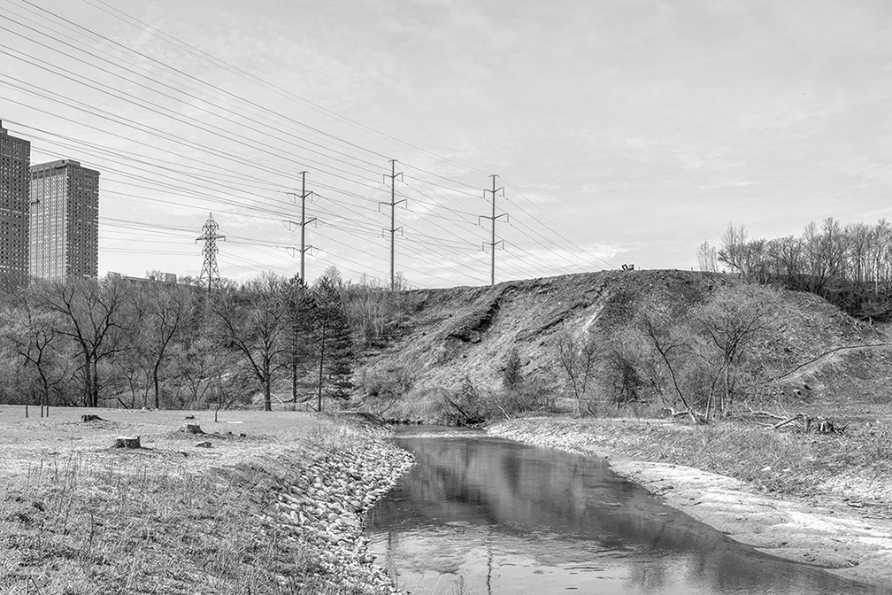 Lawrence Warriner, president of Don’t Mess with the Don, a non-profit group whose mission is to protect and restore Toronto’s ravines, often runs along the trail beside the West Branch of the Don. “Before the clearcutting, I was running through there at night, and saw a mink and a coyote. I’ve seen beaver there multiple times. Their habitat is fragile because of all the invasive species in the valley. I’m not concerned about the deer because they have the ability to move and there’s a lot of them, but a lot of the animals are not able to move so easily. Like the mink. It was right in the middle of that clearcut in Ernest Thompson Seton Park. It was in a log looking out at me. Now its home is gone. The double impact is, not only have they severed wildlife corridors, they’ve killed thousands of animals because they can’t get out of the way of the construction.”